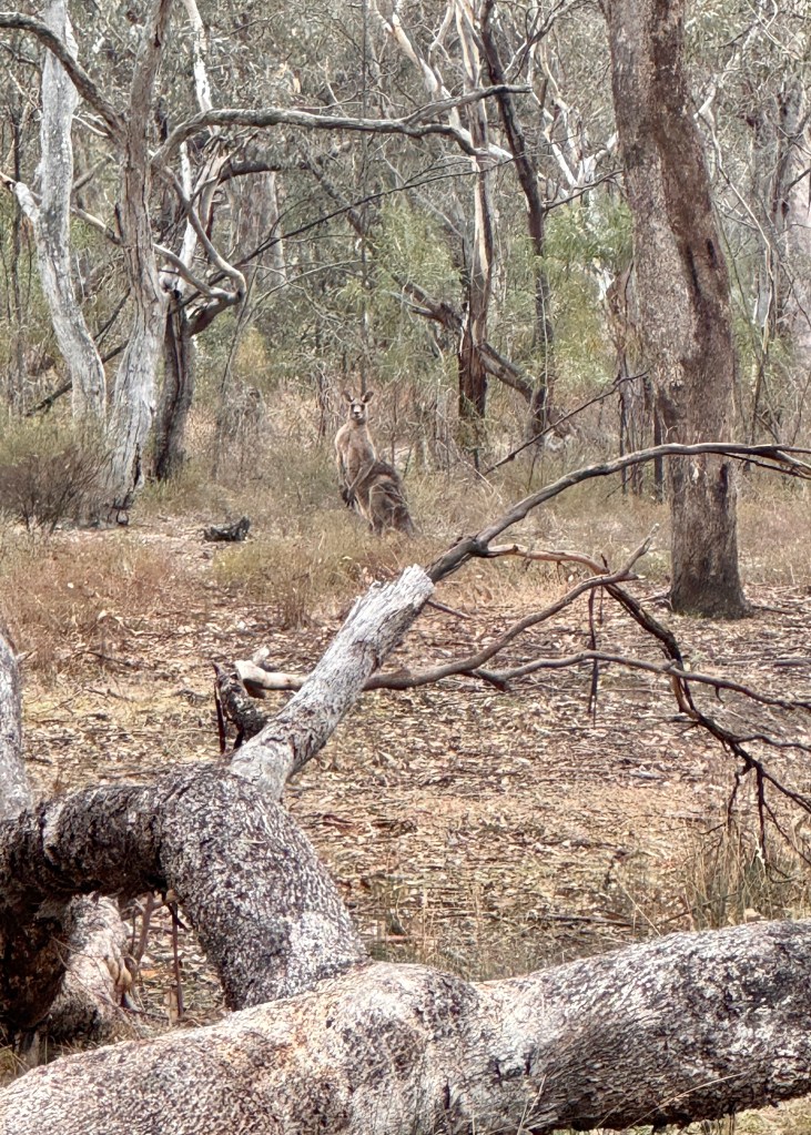 The old Police Paddock opposite the School is a small block of open eucalypt woodland. The old scout halls are located in the SE corner. This is where we found the fungi and the big grey kangaroo.