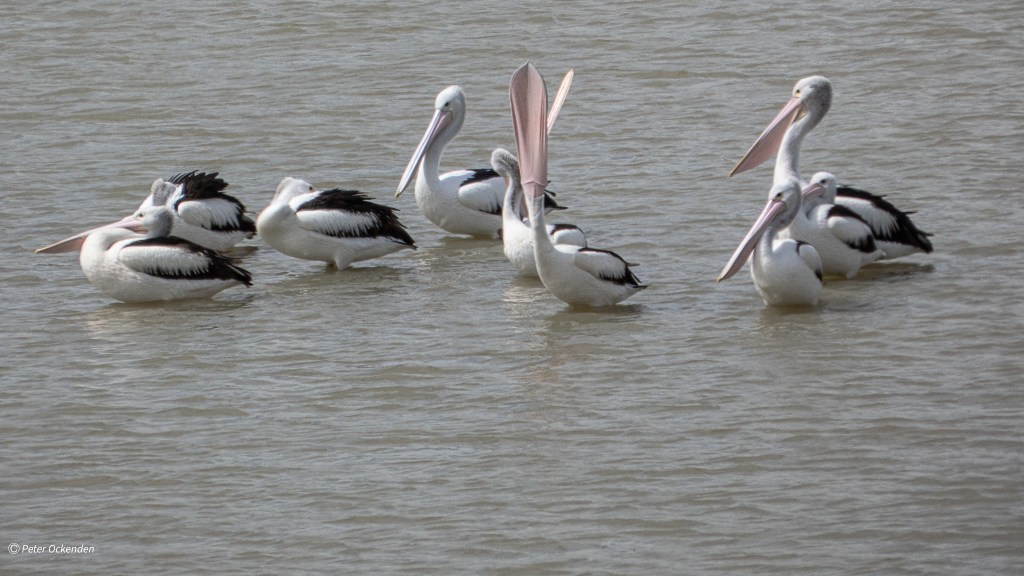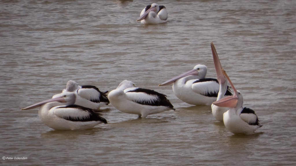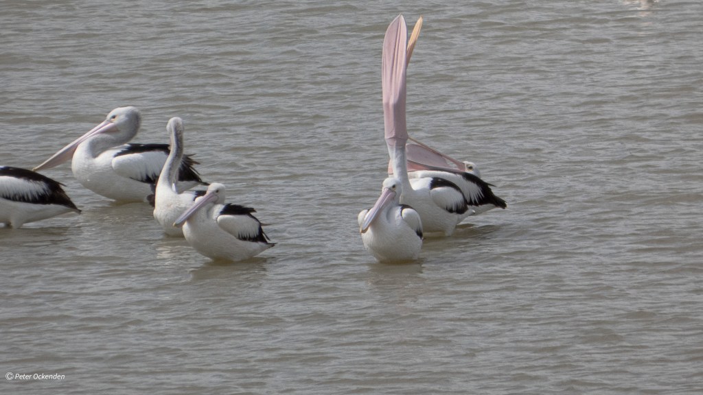 Winton Wetlands today the Pelicans were testing out their fishing gear. We saw at least 85 birds near the overflow exit at Stockyard Creek. The water level was very low. Very few other birds except for an Australasian Darter a few Whistling Kites and a Brown Falcon. We were only there for a short time looking for birds. It’s getting very dry in our region with little of the promised spring rains and the wetlands continue to dry out.