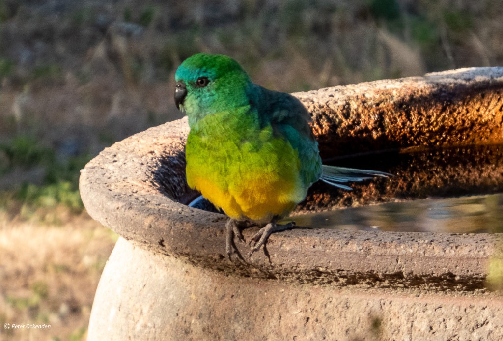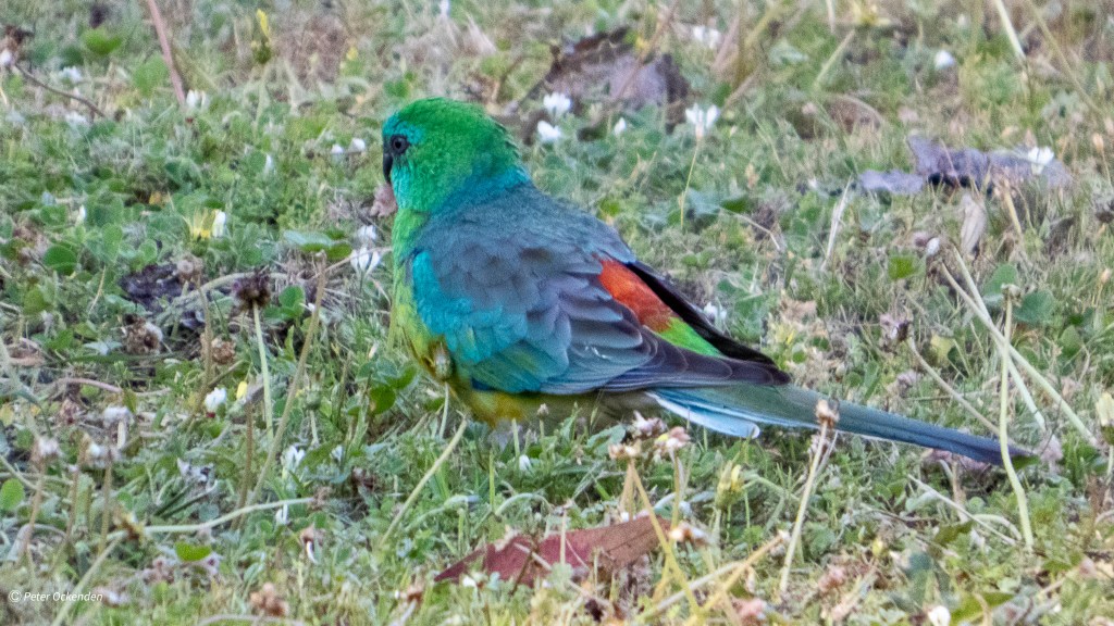 The Red rump on this parrot is very apparent. We used to get good numbers of species feeding in parts of our weedy lawn, they are seed eaters and seem to like Capeweed after it has dried out. There are less about now with our changing climate.